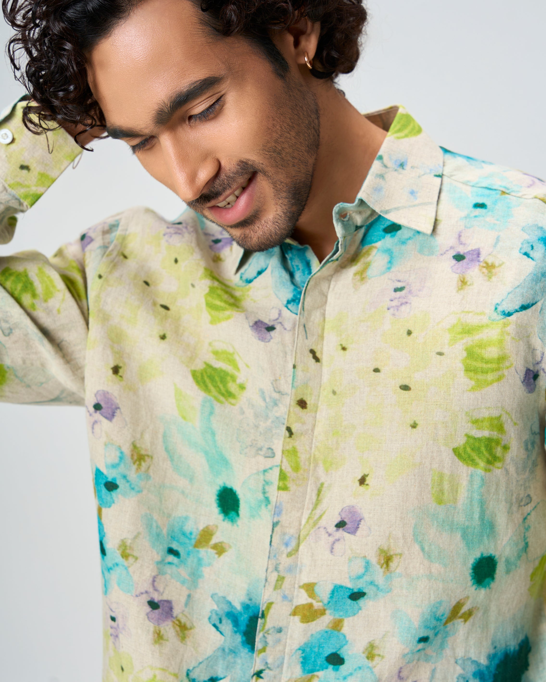 The Monet Garden Shirt is a wearable piece of art, capturing the tranquil beauty and soft, blended light of an Impressionist painting. Crafted from 100% lightweight flax linen, it offers an airy, breathable feel and an effortless drape, perfect for warmer months.