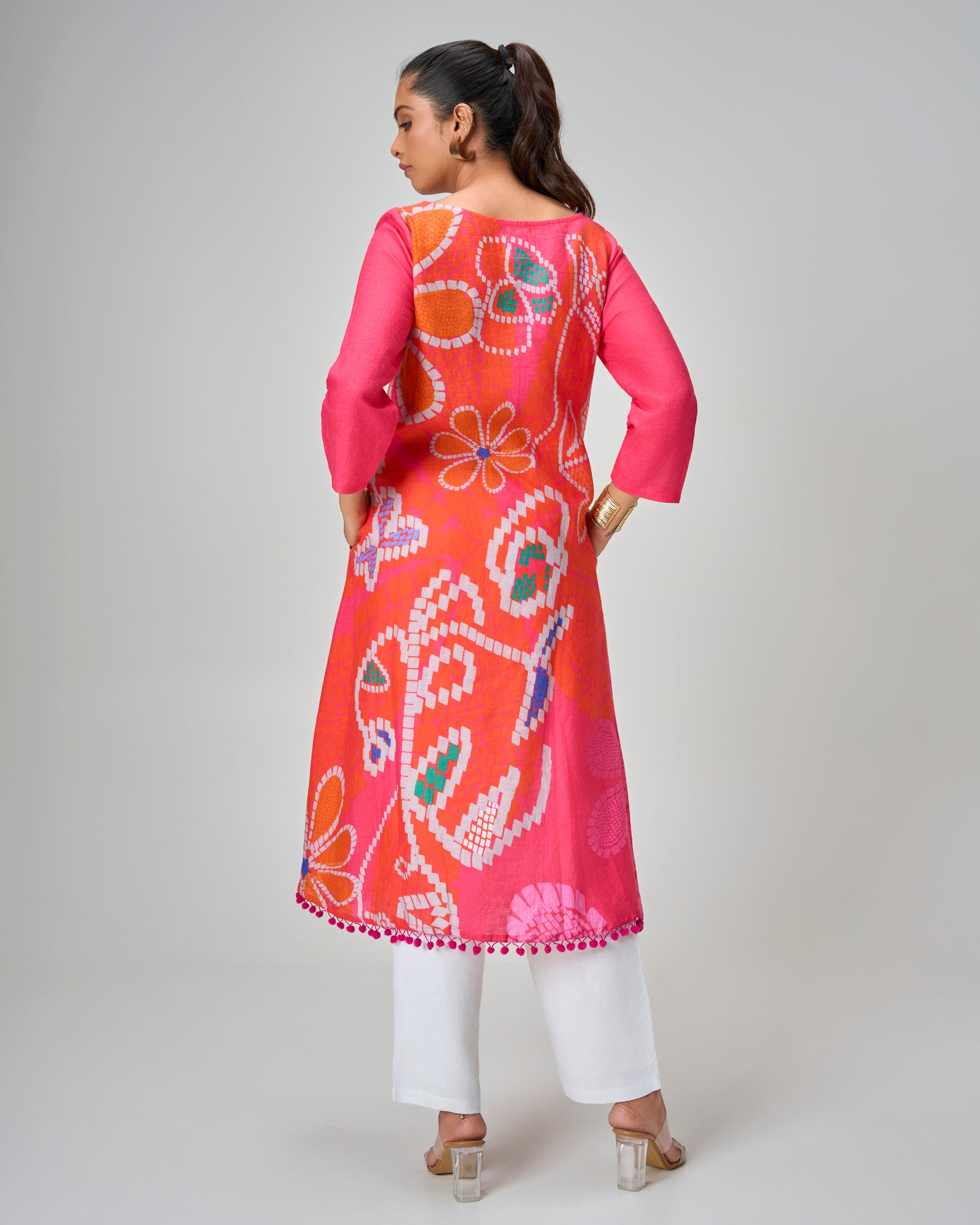Coral Pop Linen Kurta